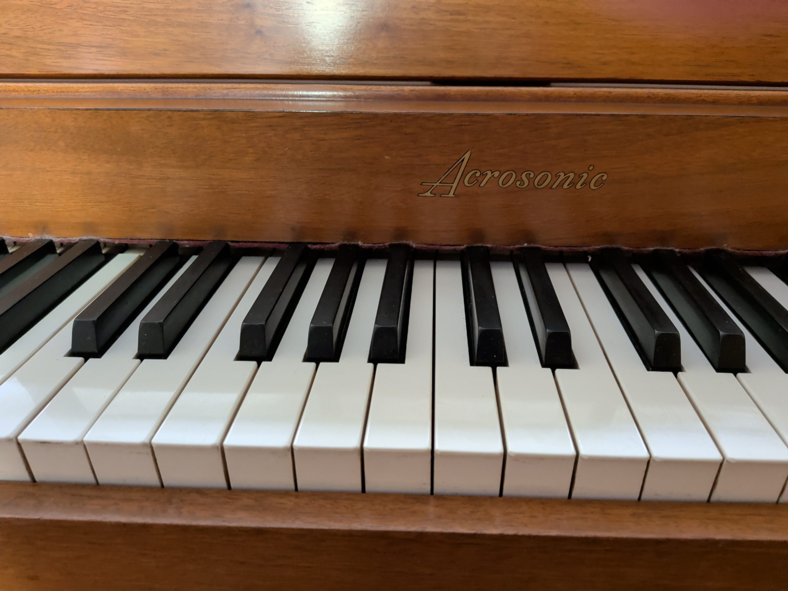 This Acrostic piano is a fun play, with a bright tone. Ready to liven up it’s next home.