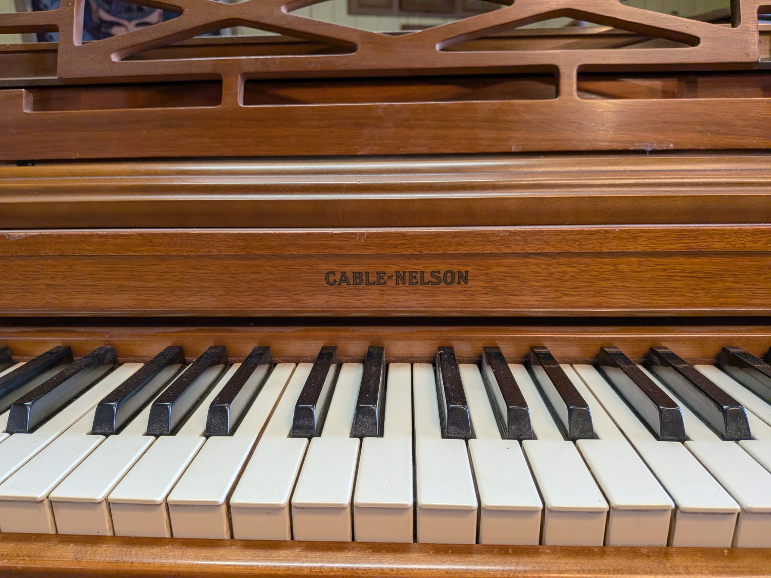 This Cable Nelson Spinet has a nice light wood finish, and is a joy to play.