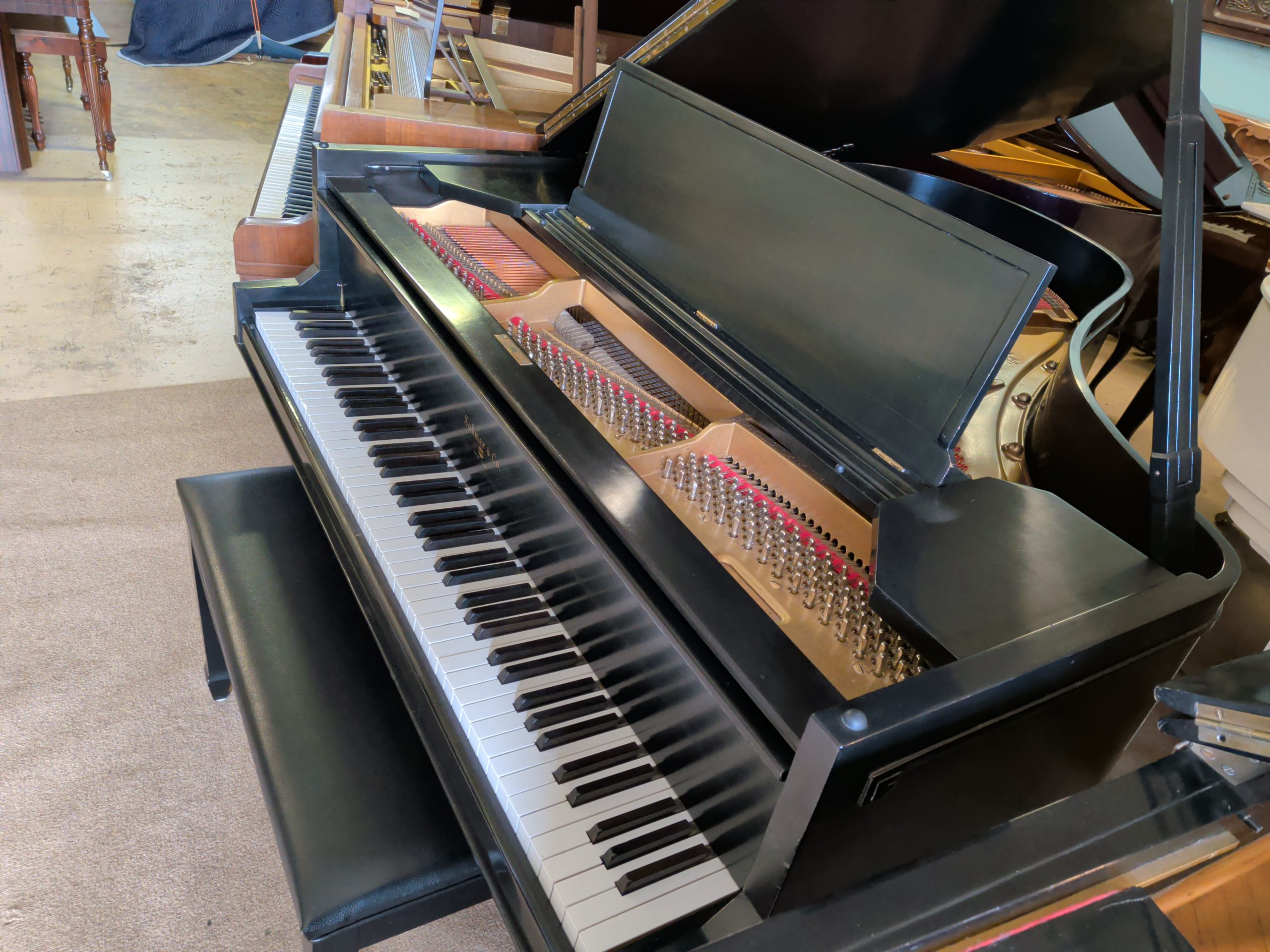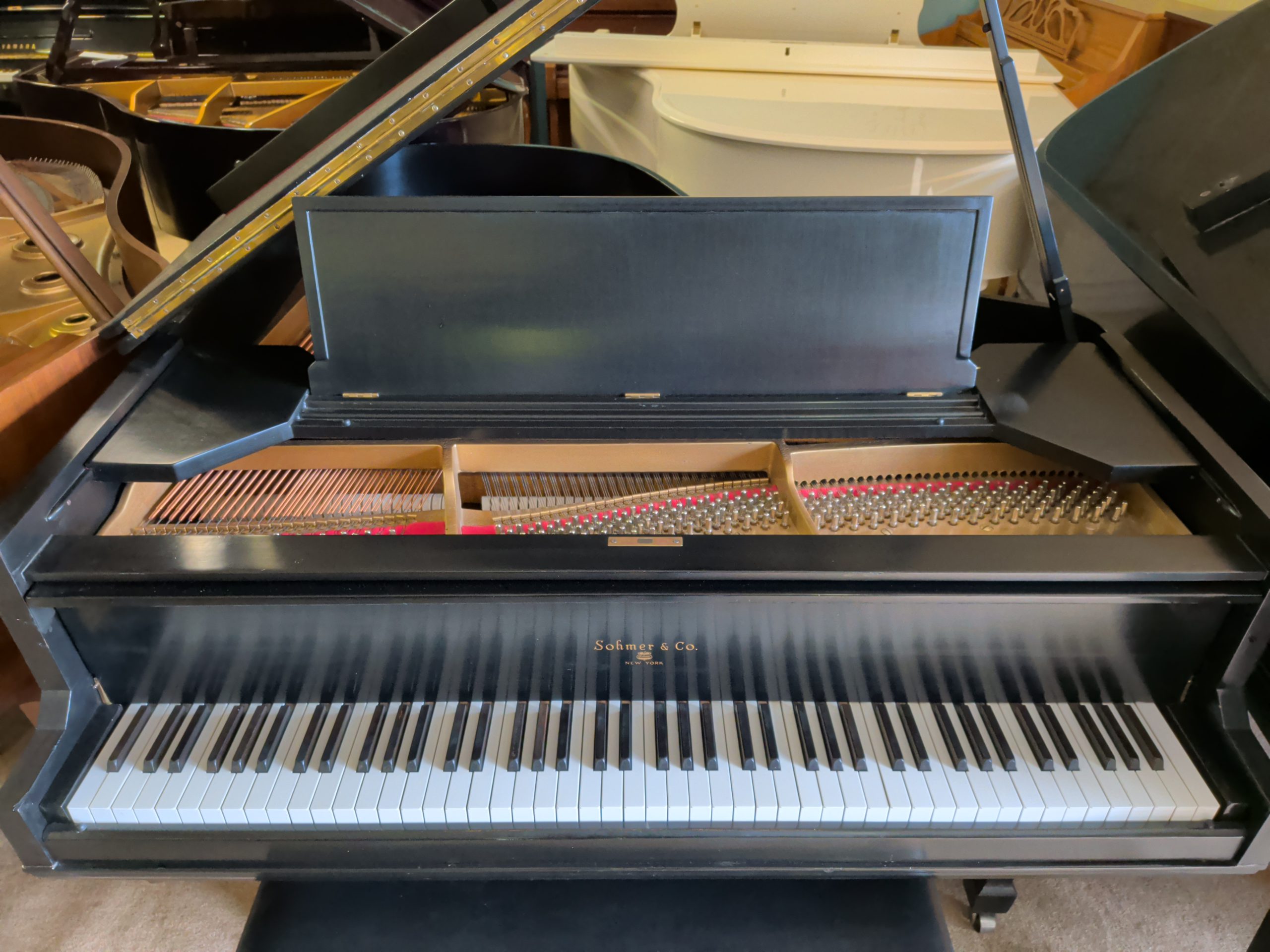 The Sohmer Piano Company built some of the finest pianos in American history. Sohmer was established in 1872 by Hugo Sohmer and K. Kuder when they purchased The Marshall & Mittauer Piano Company in New York. Sohmer was one of the largest and most prestigious piano makers of the 19th and early 20th Centuries, and they offered a full line of squares, grands, uprights, and player pianos. Sohmer was known for their use of elaborate woods and had a reputation for exquisite craftsmanship. Sohmer is one of only a handful of American piano manufacturers to survive and keep the company in the family throughout the 20th Century. Sohmer was sold to Pratt Reed & Company in 1982, then it was sold again subsequently. Sohmer was out of production for a few years in the 1990s, but the prestigious old name is being produced again today.
