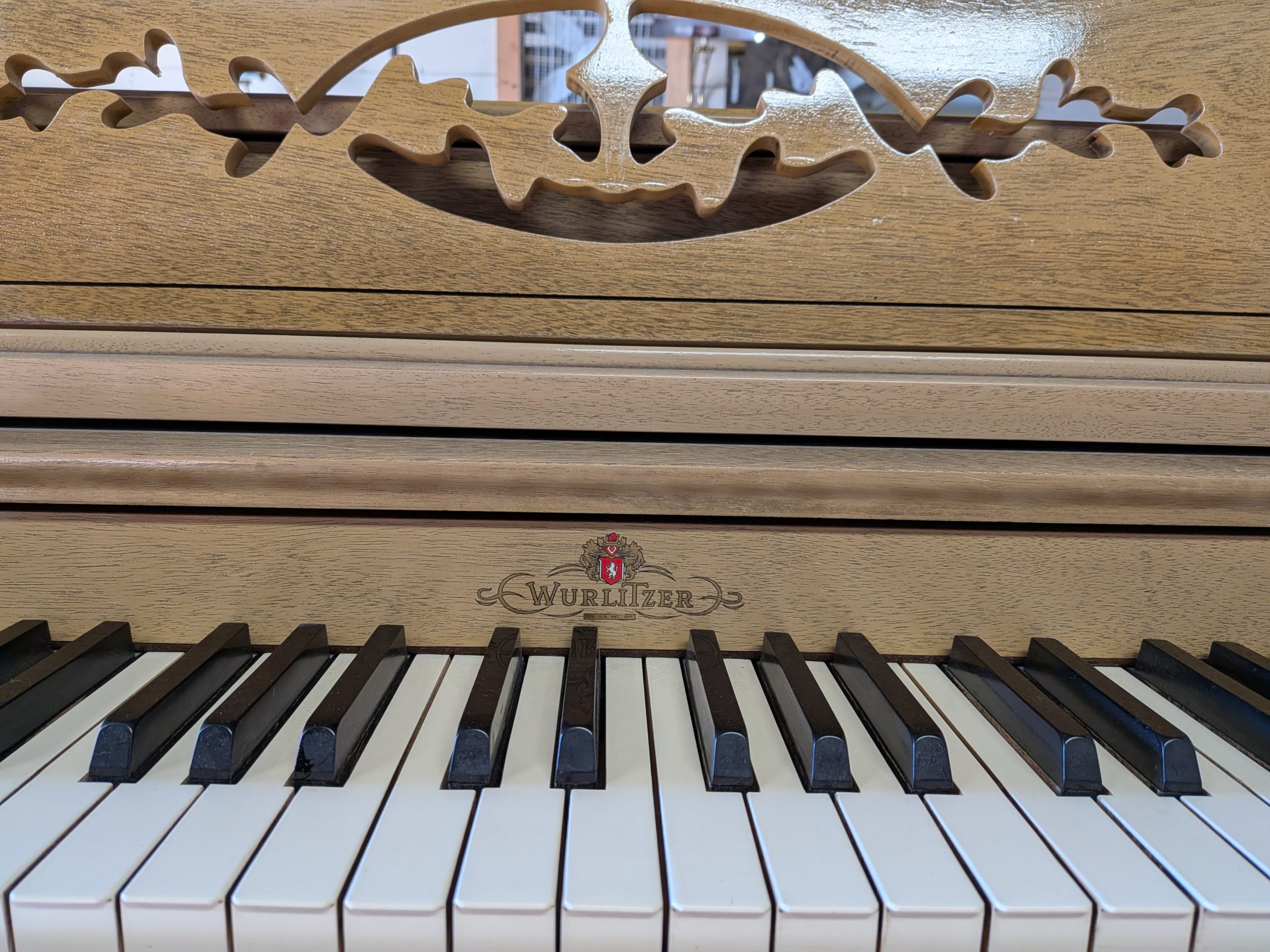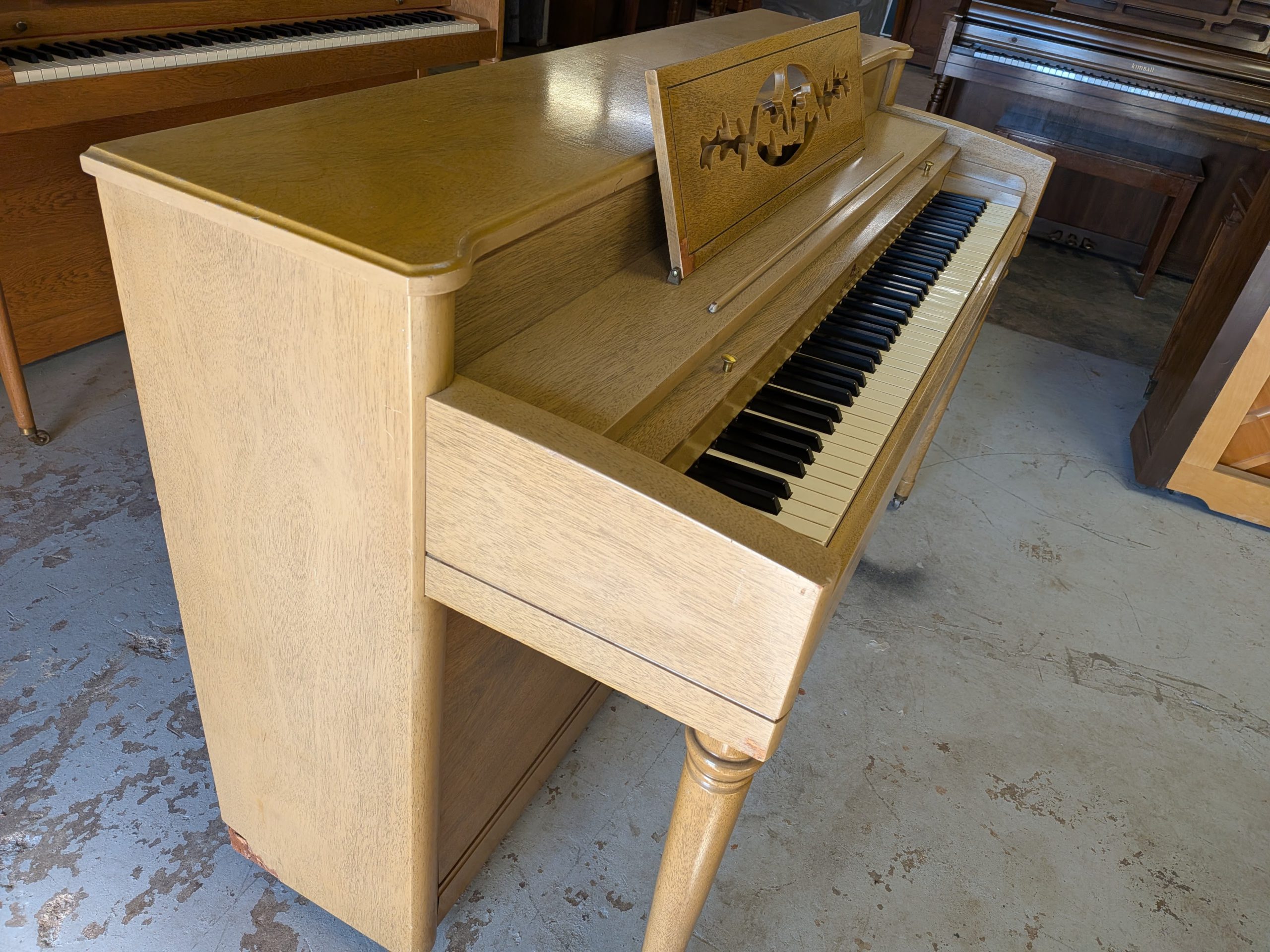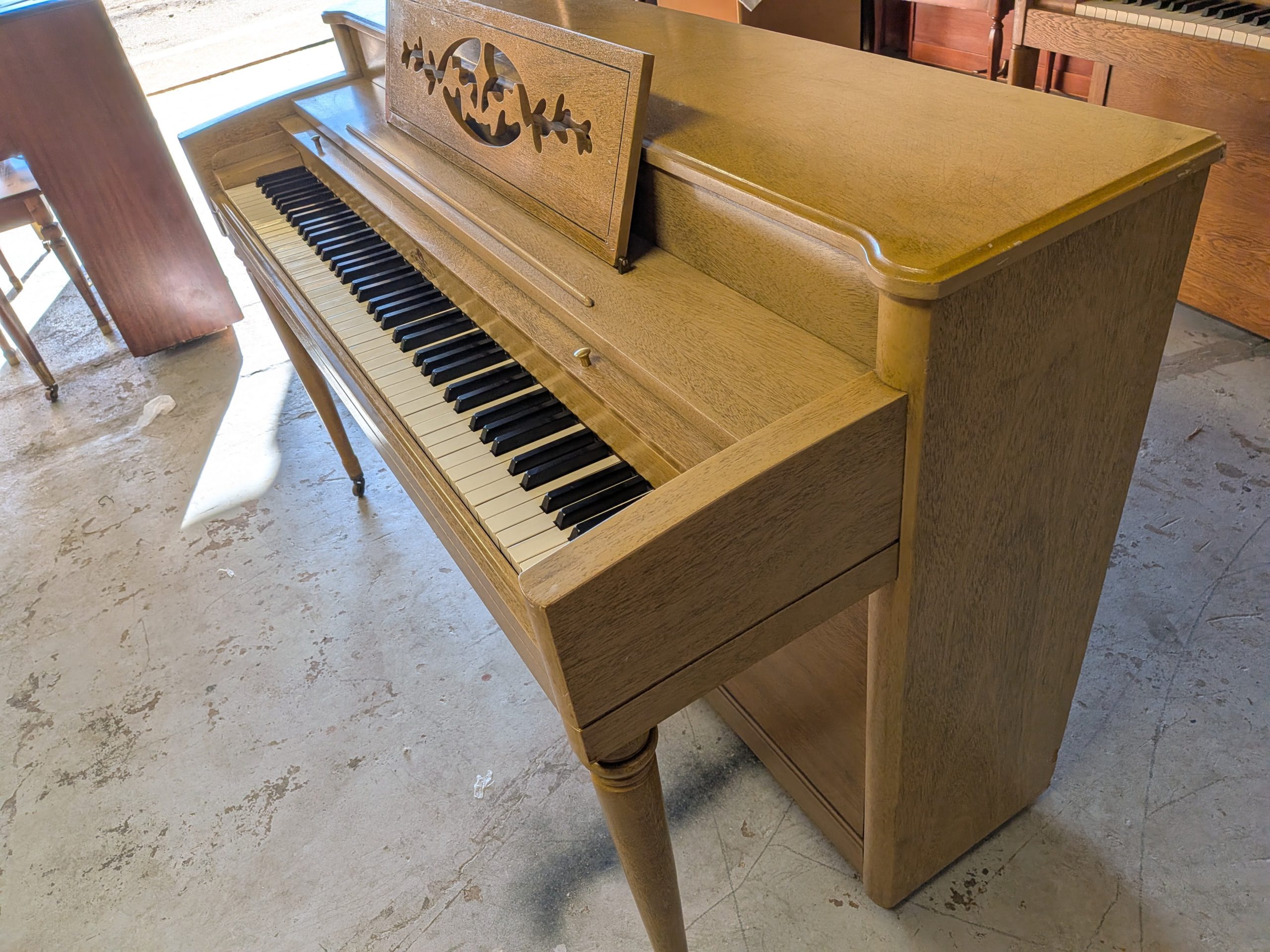 With a style of its own, this spinet can blend into the right living room and brighten it up at the same time.